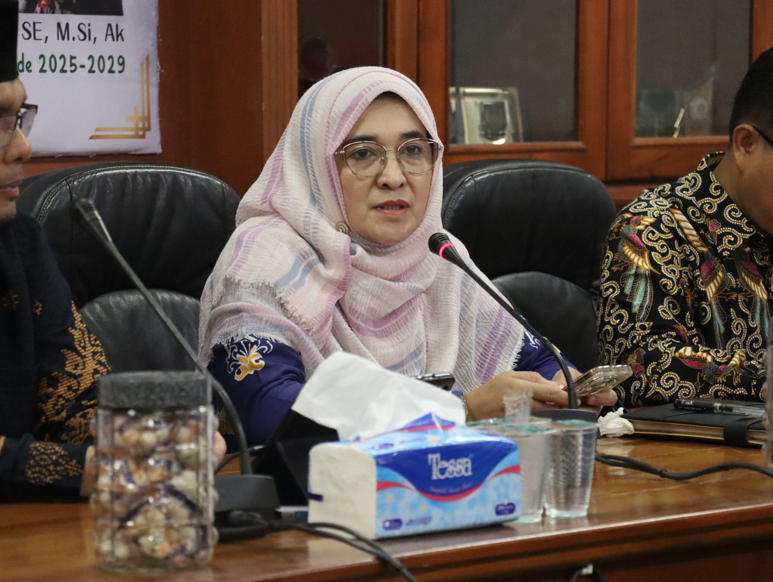 “Rektor UIN Suska Riau Prof. Dr. Hj. Leny Nofianti, MS. SE. M.Si, Ak, CA menyampaikan pentingnya membangun identitas kelembagaan yang kuat bagi Suska Waqf Centre (SWC). Beliau menekankan bahwa selain penguatan manajemen, tampilan visual dan branding yang modern diperlukan untuk meningkatkan kepercayaan publik terhadap lembaga wakaf kampus.”