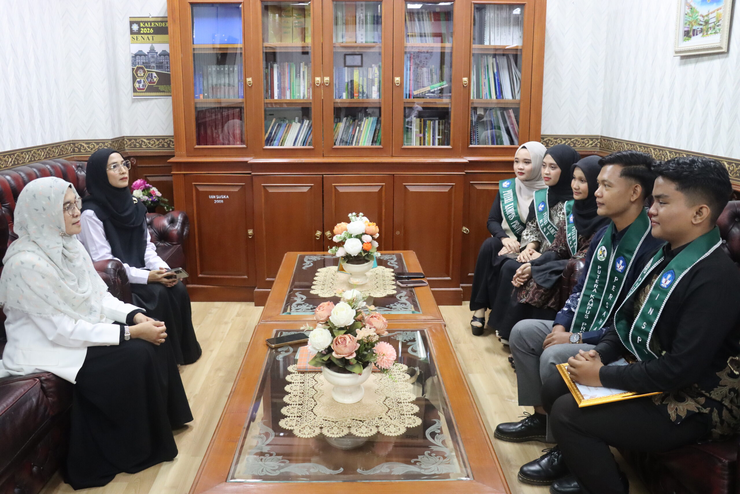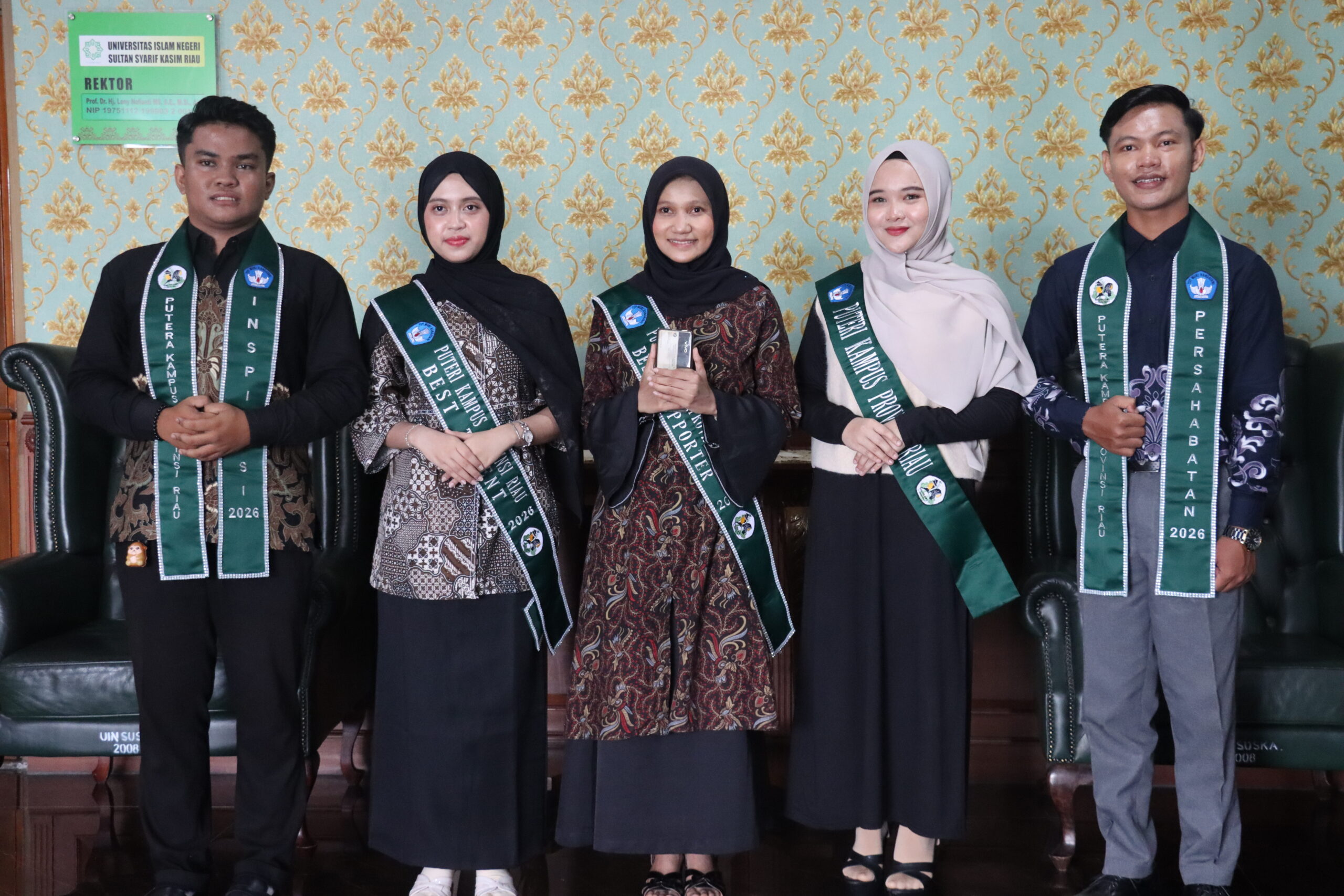uin-suska.ac.id Rektor Universitas Islam Negeri Sultan Syarif Kasim Riau, Prof. Dr. Hj. Leny Nofianti MS, SE, M.Si, Ak, CA menerima audiensi enam mahasiswa berprestasi yang berhasil menembus babak finalis dalam pemilihan Putra-Putri Kampus Provinsi Riau 2026. Dari total 1.180 pendaftar se-Provinsi Riau, delegasi UIN Suska menunjukkan dominasi dengan meloloskan empat orang ke jajaran Top 12 serta meraih berbagai atribut penghargaan, termasuk gelar Putra Kampus Inspirasi, Persahabatan, Best Supporter, hingga Best Talent. Salah satu pencapaian diraih oleh Intan yang berhasil masuk top 12 menempati urutan ketiga.