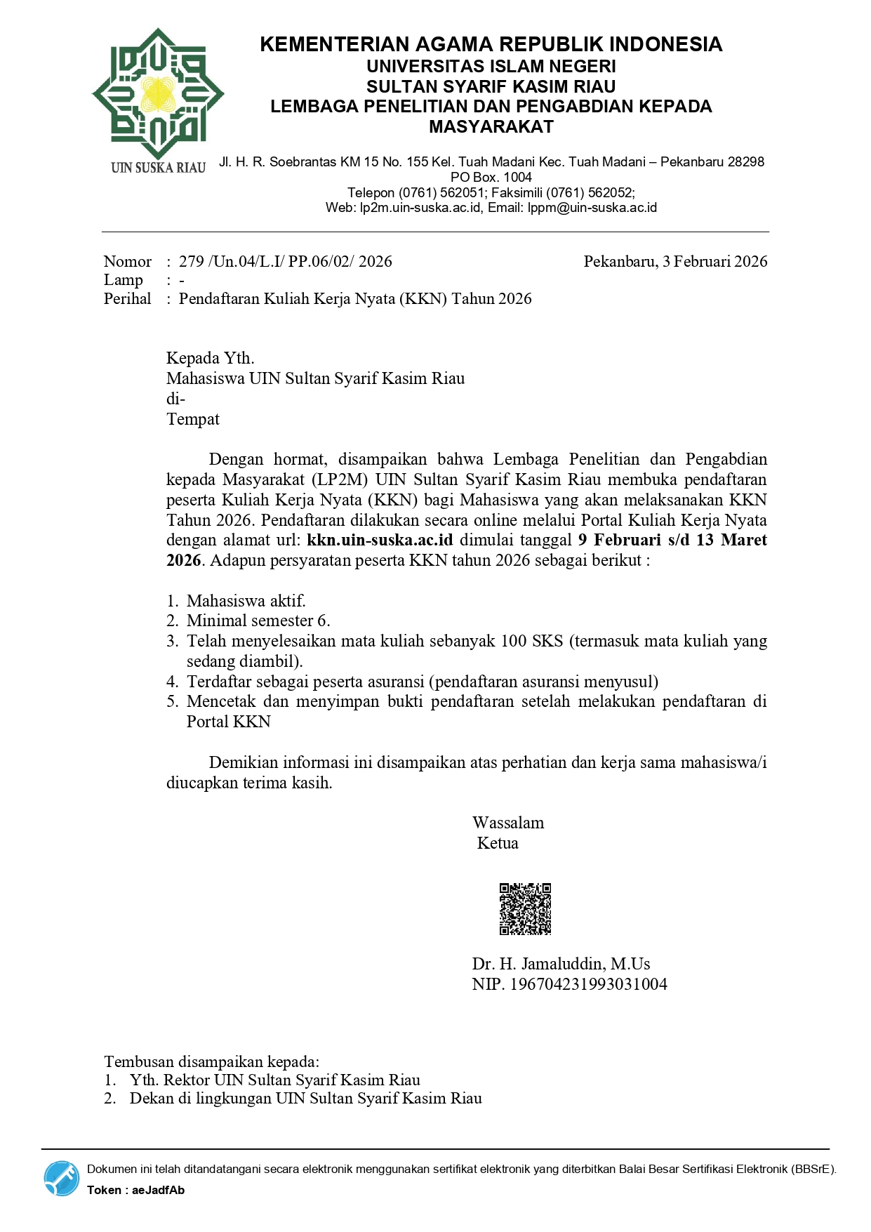 Pengumuman Pendaftaran Kuliah Kerja Nyata (KKN) Tahun 2026