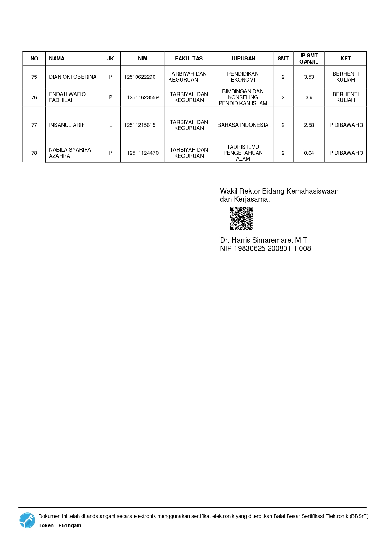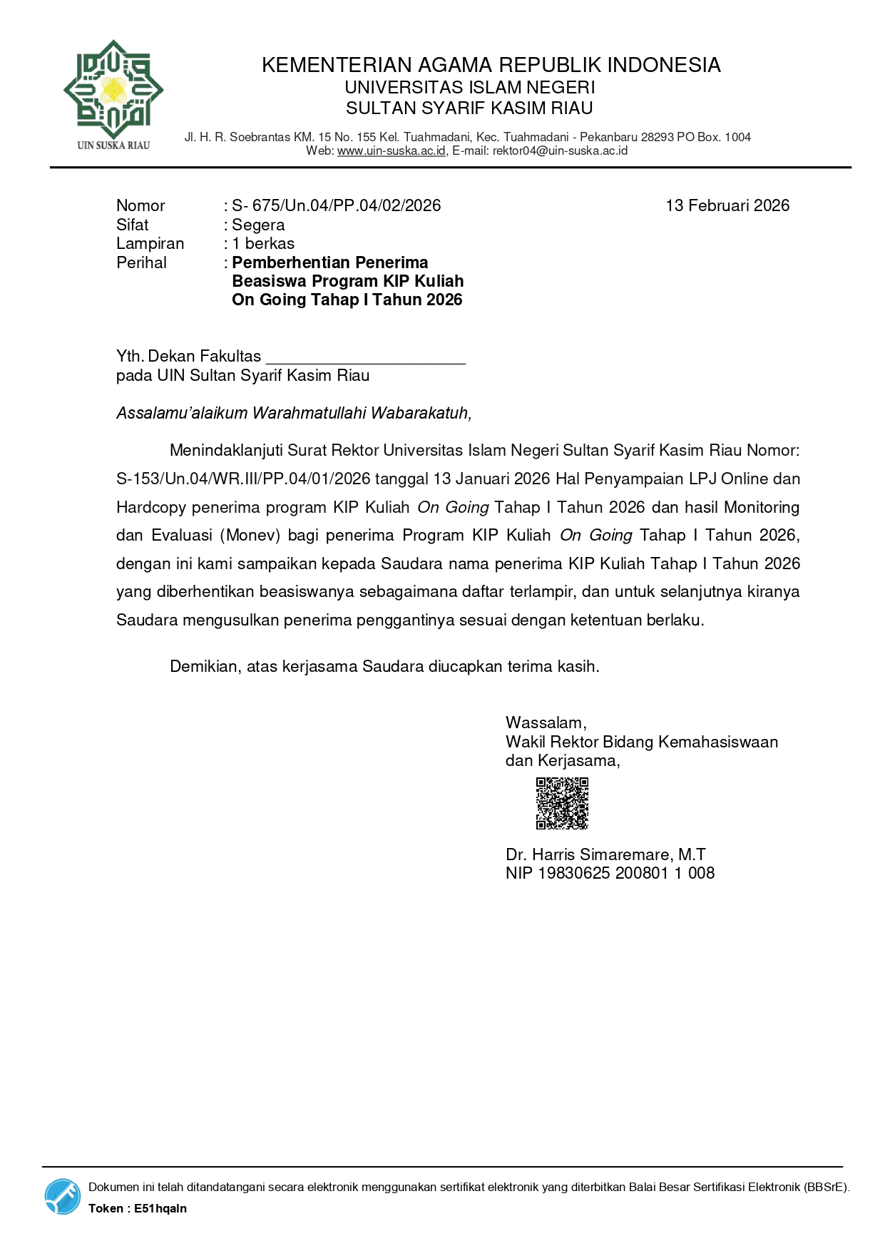 Surat Pemberhentian Program KIP Kuliah Tahap I 2026