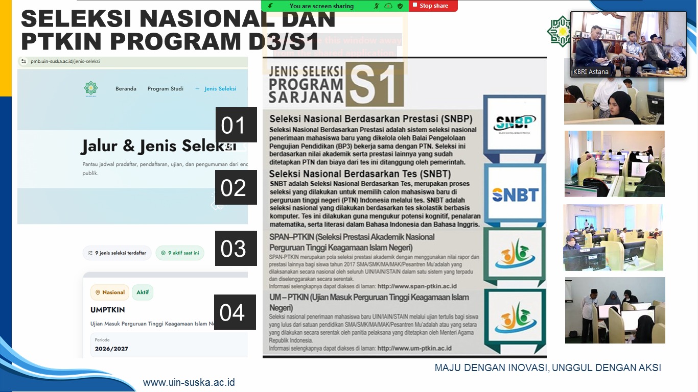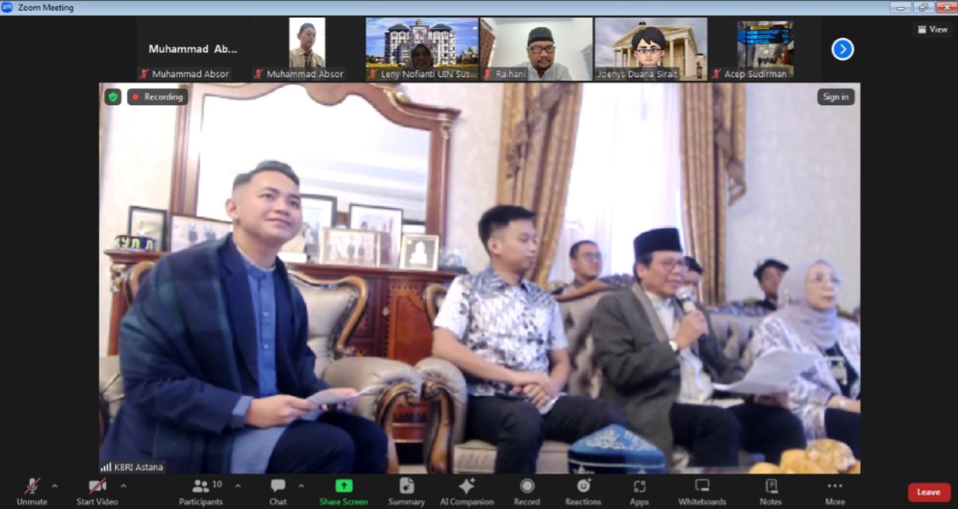 uin-suska.ac.id.Kedutaan Besar Republik Indonesia (KBRI) Astana bersama Universitas Islam Negeri Sultan Syarif Kasim Riau menegaskan komitmen penguatan kerja sama akademik internasional melalui penyelenggaraan Webinar Pendidikan dan Buka Puasa Bersama yang digelar di Wisma Duta KBRI Astana dan terhubung secara daring dengan Indonesia, Sabtu (21/02/2026). Kegiatan ini menjadi momentum strategis untuk memperluas kolaborasi antara Universitas Islam Negeri Sultan Syarif Kasim Riau dan sejumlah universitas terkemuka di Kazakhstan, sekaligus memperkuat peran diplomasi pendidikan dalam hubungan bilateral Indonesia–Kazakhstan.