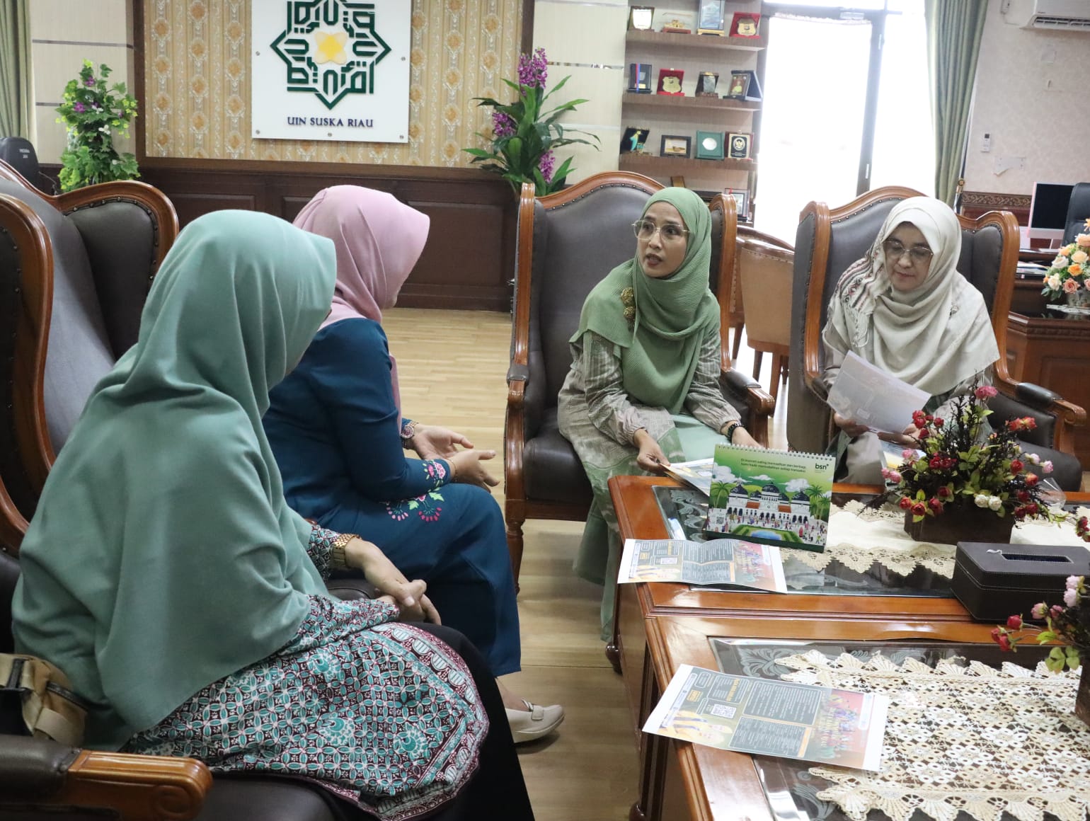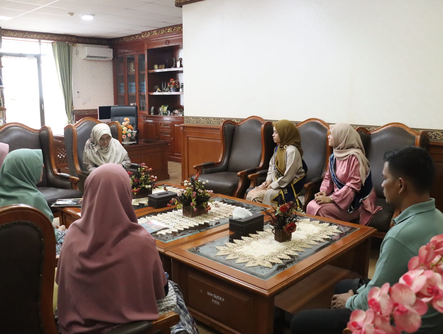Dalam audiensi tersebut, Dr. Umi Kulsum hadir didampingi oleh delegasi lengkap yang terdiri dari unsur pimpinan, staf ahli, hingga perwakilan alumni Duta Bahasa. Mereka adalah Yulita Fitriana, M.A., selaku narahubung kegiatan, Marlina, S.Pd., serta dua perwakilan dari Ikatan Duta Bahasa Riau, yakni Ade Puspita Ningsih dan Dini Nofira.