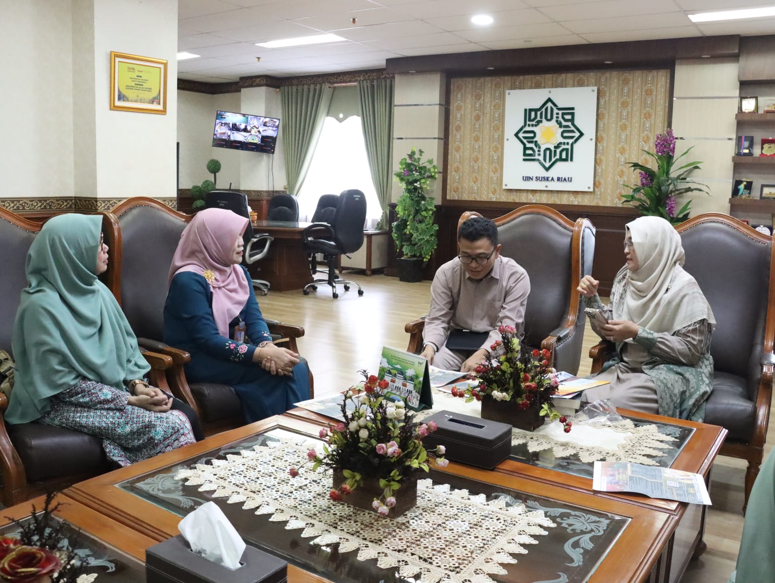 Kehadiran tim Balai Bahasa ini disambut hangat oleh Rektor UIN Suska Riau, Prof. Dr. Hj. Leny Nofianty MS, SE, M.Si, Ak, CA. Dalam sambutannya, Rektor menegaskan bahwa kunjungan ini bukan sekadar pertemuan formal, melainkan langkah nyata dalam menyelaraskan visi dunia akademis dengan upaya pelestarian identitas bangsa melalui bahasa. Beliau memandang bahasa bukan sekadar alat komunikasi, melainkan penjaga peradaban yang harus terus dirawat.