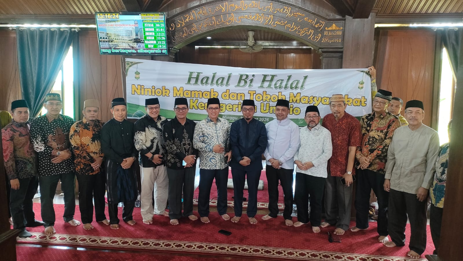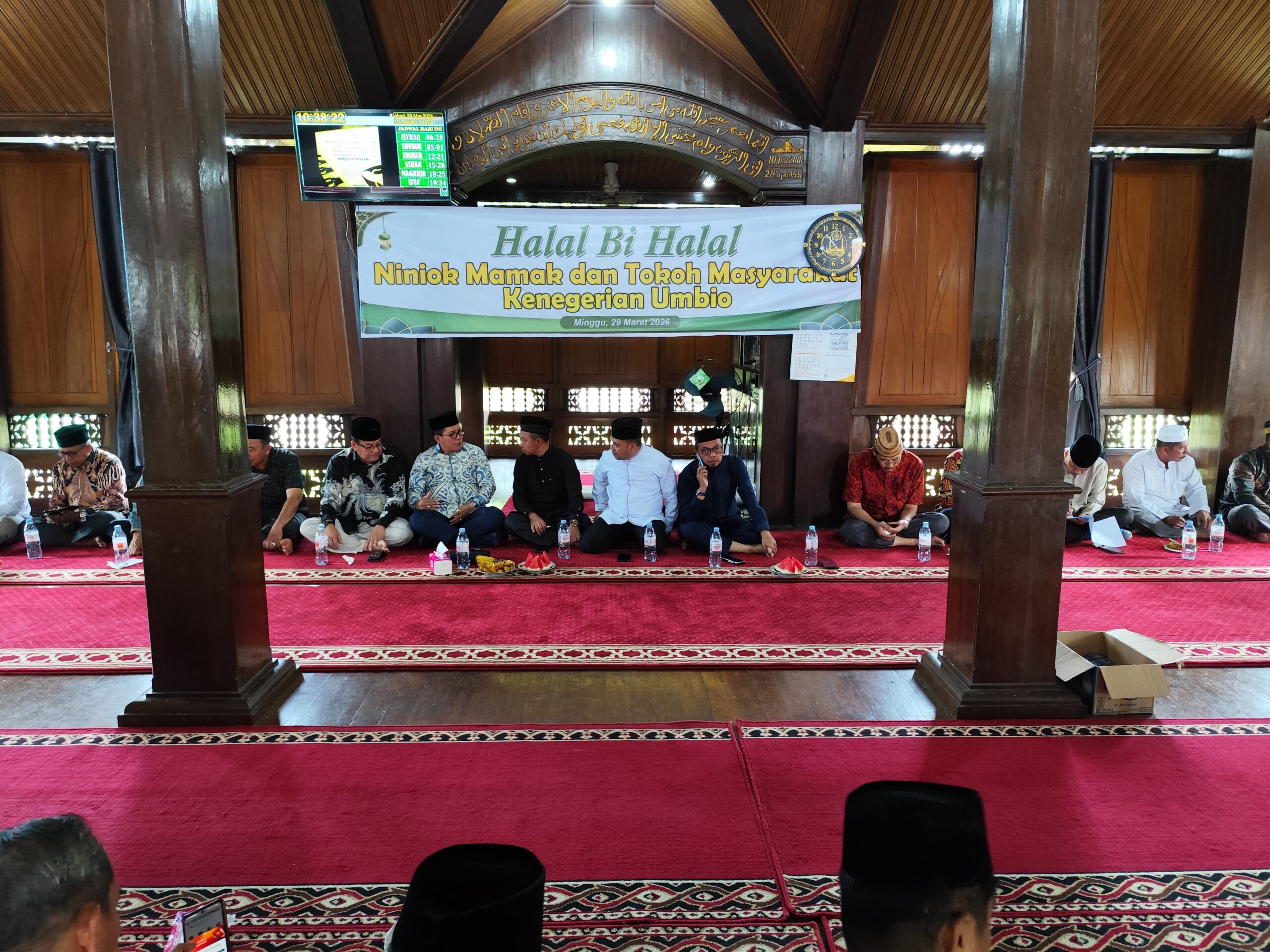 uin-suska.ac.id Suasana di Masjid Jami’ Kenegerian Umbio, Ahad, 29 Maret 2026, tampak semarak. Puluhan kendaraan berjejer di pelataran masjid tua yang berdiri anggun dengan konstruksi kayu khasnya. Dari kolong masjid, alunan musik tradisional Calempong menggema, mengiringi suasana silaturahmi yang hangat.