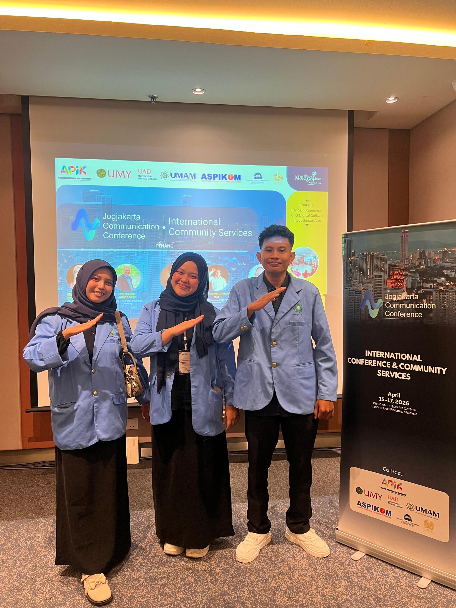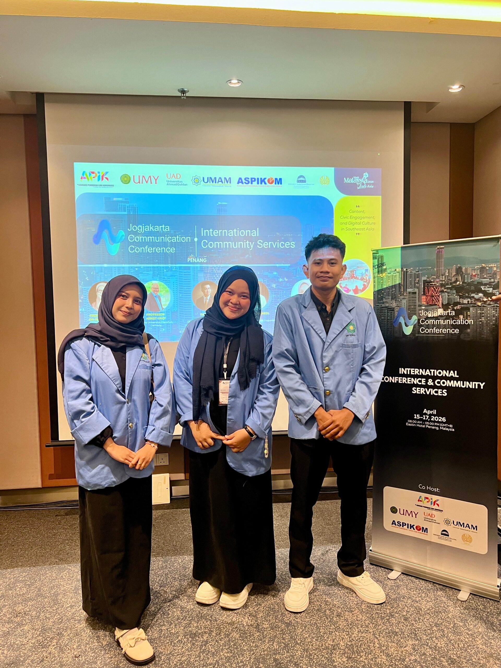 uin-suska.ac.id Tiga mahasiswa dari UIN Sultan Syarif Kasim Riau berhasil tampil dalam forum ilmiah internasional 7th Jogjakarta Communication Conference yang diselenggarakan di Malaysia pada 15–17 April 2026, bertempat di Eastin Penang Hotel.