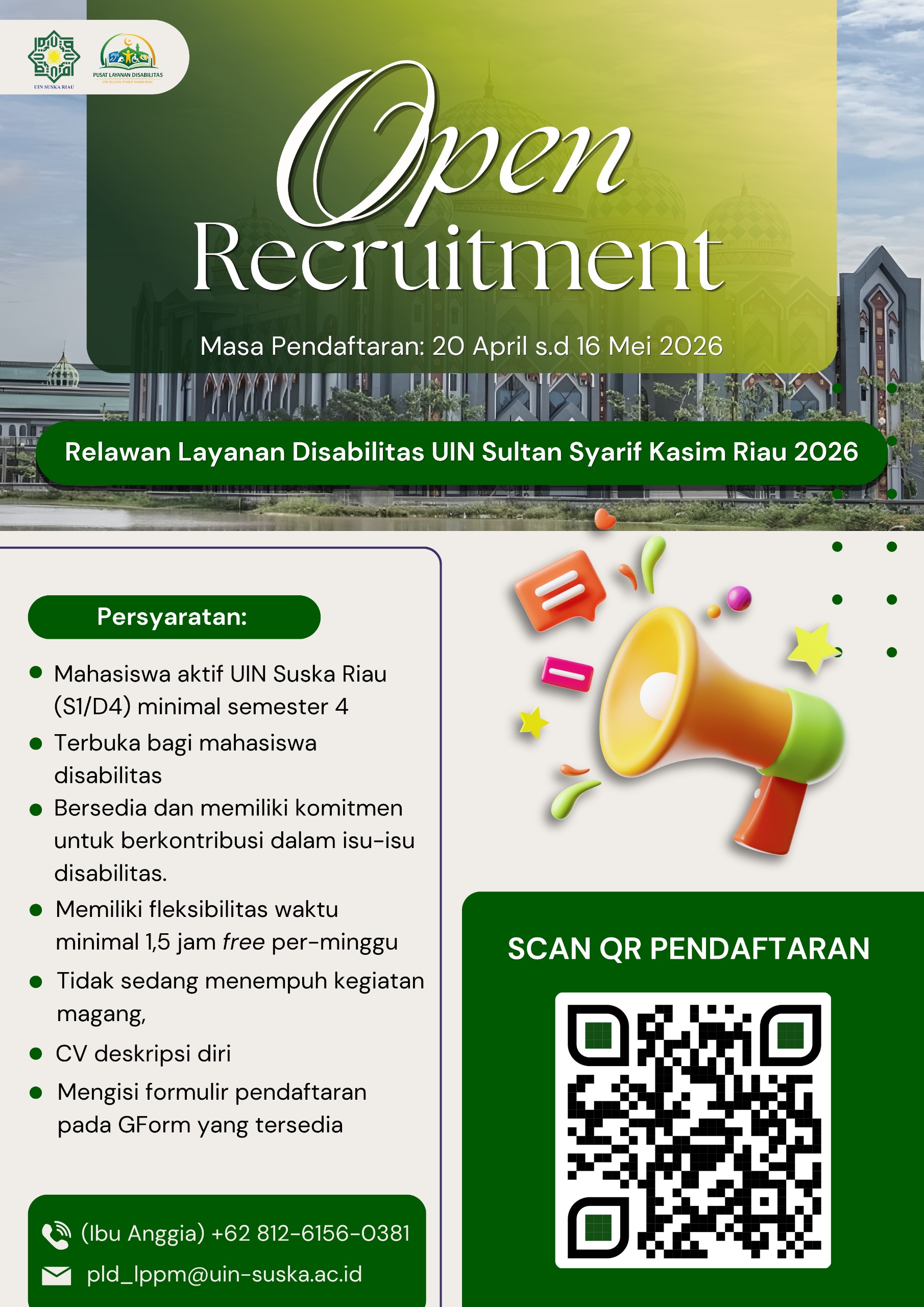 Kami membuka kesempatan bagi kamu yang memiliki kepedulian dan semangat untuk berkontribusi dalam mewujudkan lingkungan kampus yang ramah dan inklusif bagi mahasiswa disabilitas.