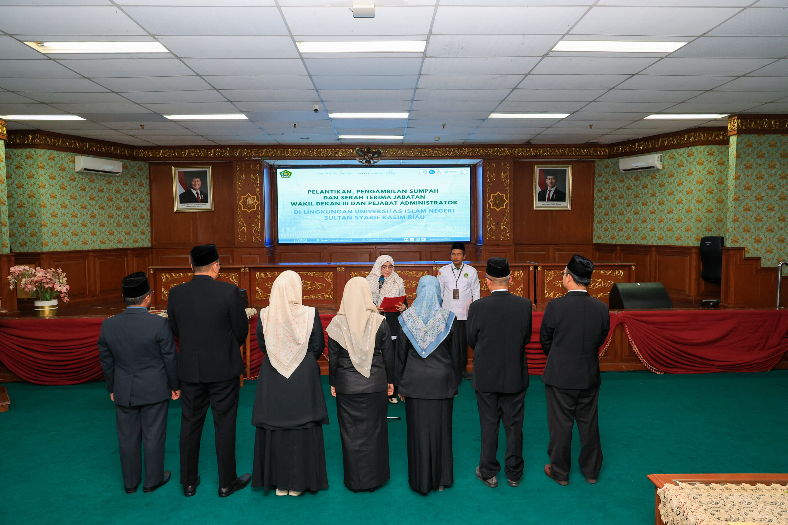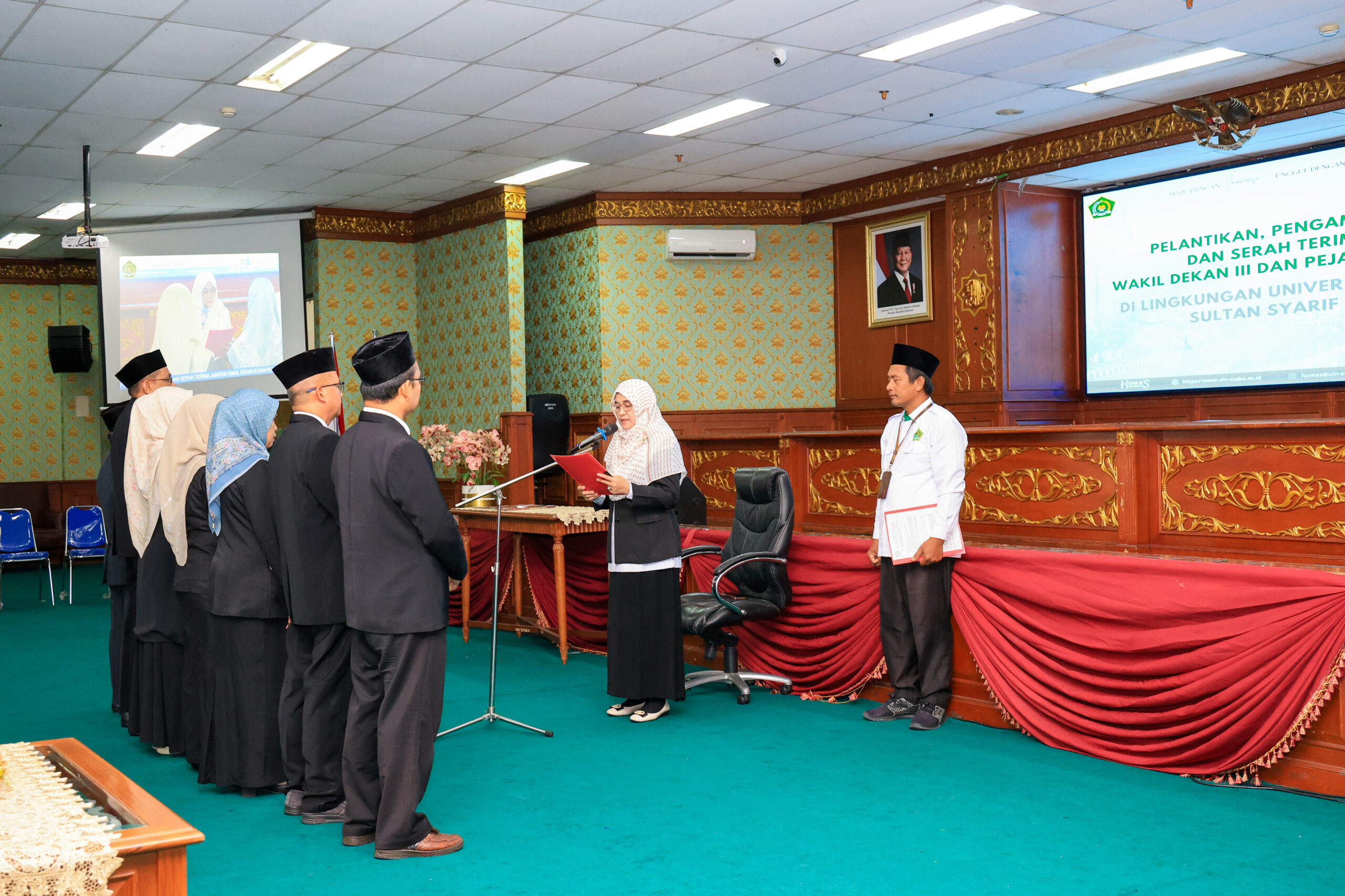 uin-suska.ac.id Universitas Islam Negeri (UIN) Sultan Syarif Kasim Riau menggelar pelantikan, pengambilan sumpah, serta serah terima jabatan Wakil Dekan III dan pejabat administrator di lingkungan kampus. Kegiatan ini dilaksanakan pada Senin, 27 April 2026, bertempat di Ruang Lantai 5 Auditorium Gedung Rektorat, sebagai bagian dari upaya penyegaran organisasi dan penguatan tata kelola kelembagaan.