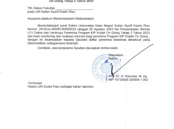 Surat Pemberhentian Penerima Beasiswa Program KIP Kuliah On Going Tahap 2 Tahun 2023